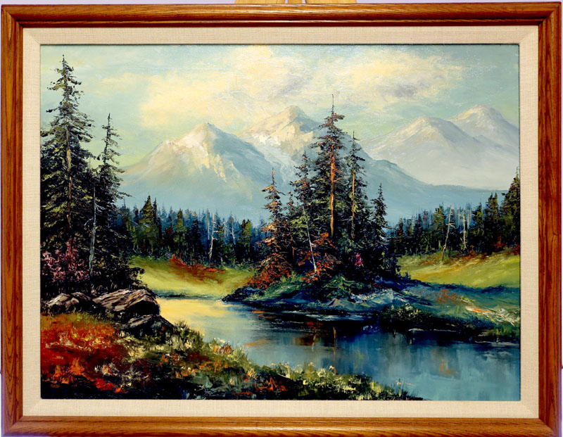 This piece is both sophisticated and fascinating. It would be perfect for display in an office or sitting room where it can be appreciated. The painting measures 24" wide X 18" high. The total measurement of the painting and frame is 27.5" wide X 21.5" high.