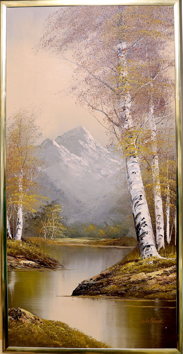 Masterfully framed in an exquisite, ornate frame. There is some damage to the frame, shown in pictures. This piece is both sophisticated and fascinating. It would be perfect for display in an office or sitting room where it can be appreciated. The painting measures 24" wide X 12" high. The total measurement of the painting and frame is 24,5" wide X 12,5" high