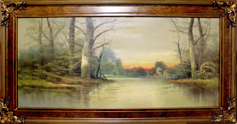 The painting measures 36" wide X 16" high. The total measurement of the painting and frame is 41,5" wide X 21,5" high