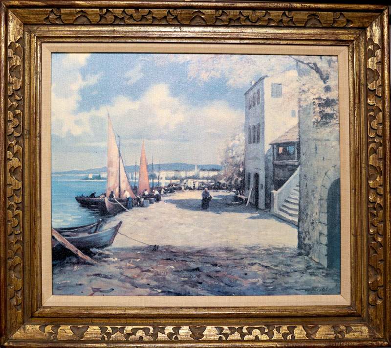 The painting measures 24" wide X 20" high. The total measurement of the painting and frame is 32" wide X 28" high