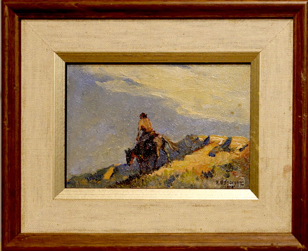 Herbert Bolivar Tschudy, (1874-1946) New York, Mass, Ohio.Calgary, Alta Gallery. The total measurement of the painting and frame is 9.75" wide X 7.75" high