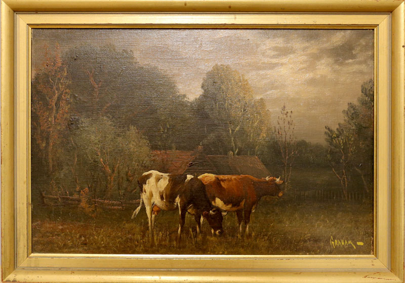 PETER GRAHAM (SCOTTISH 1836-1921) The total measurement of the painting and frame is 20" wide X 14" high