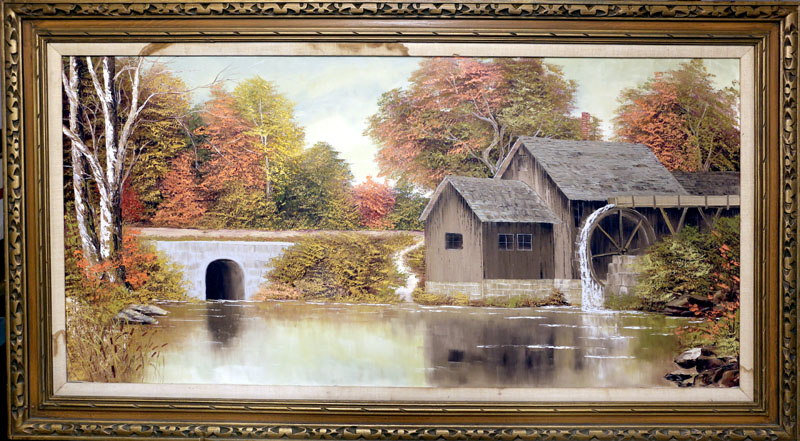 Idell was born in Crawfordsville, Indiana, on January 8, 1920. She was the daughter of the late Claude T. and Jewel (Clore) Mitchell. Idell was a life resident of the Wallace community and had attended Wallace School. Idell was a homemaker and artist. She was a former member of the Danville Illinois Art League. She was a member of the Wallace Christian Church. Idell was an accomplished artist. She had her paintings displayed in all 50 states and 3 continents.The painting measures 48" wide X 24" high. The total measurement of the painting and frame is 55.5" wide X 31.5" high